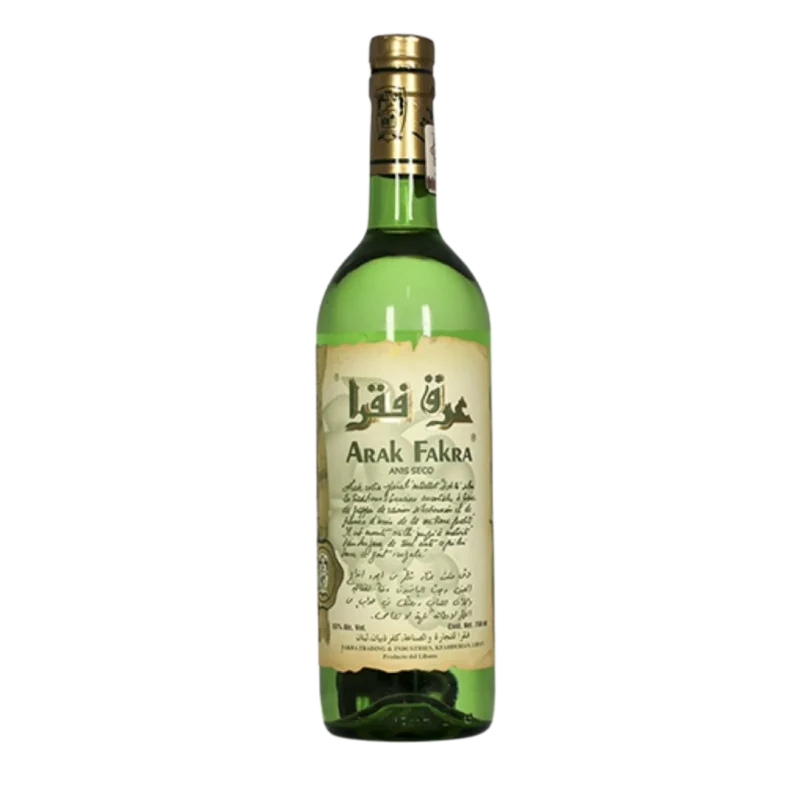 A bottle of Arak Fakra, a premium triple-distilled Lebanese spirit aged in clay jars, available for fast delivery in Amman.