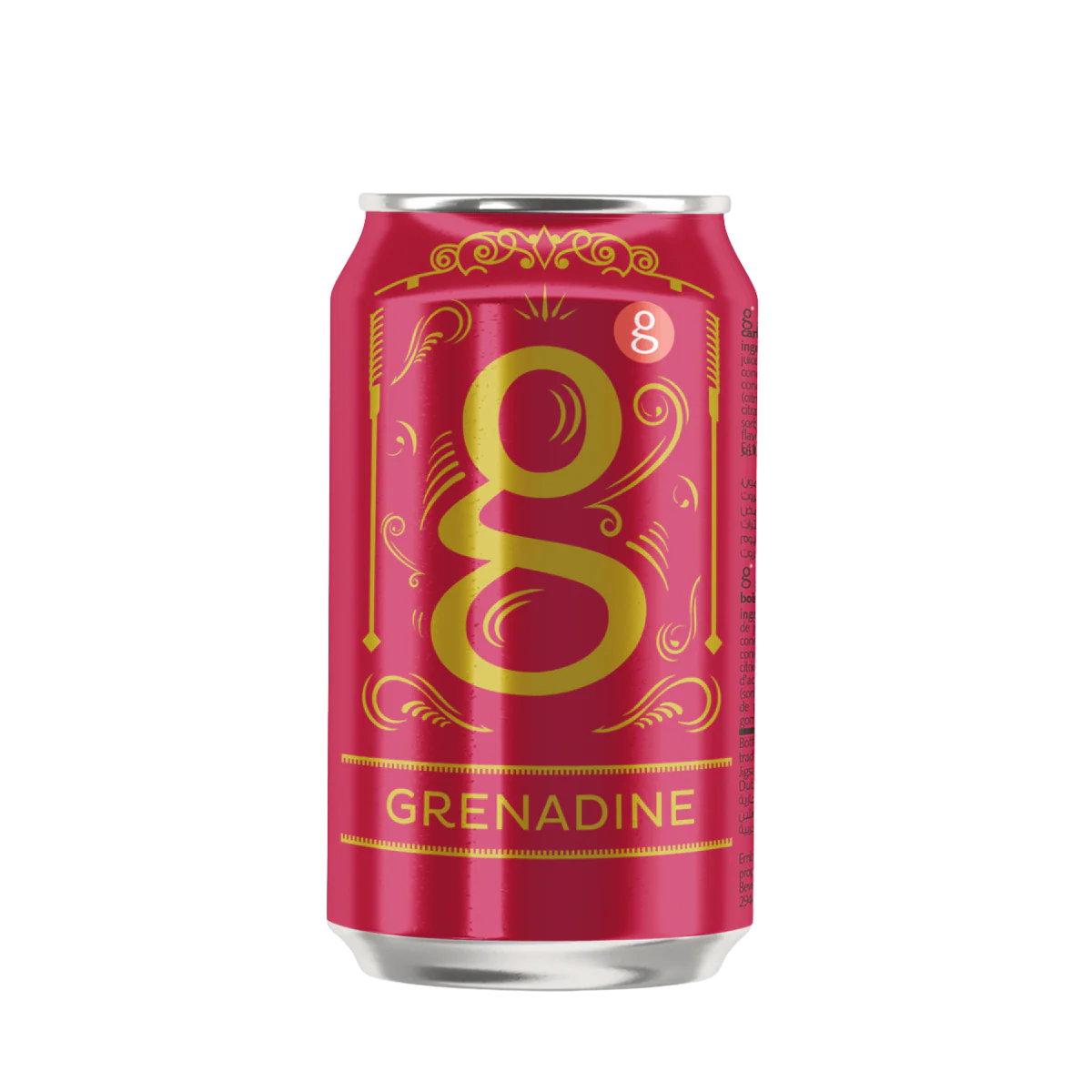 Sweet and iconic. g Grenadine is a premium carbonated soda featuring the classic, deep flavor of pomegranate. A vibrant and essential addition to any bar for creating colorful cocktails and mocktails.